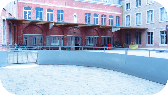 Spelen is essentieel voor de ontwikkeling van kinderen. Onze speelplaats biedt diverse speelmogelijkheden zoals een powerplaysoccerkooi, steps en spelkoffers. Kinderen kunnen ook kiezen voor rustige activiteiten zoals tekenen of lezen. Leerlingen met specifieke noden krijgen extra begeleiding tijdens de speeltijd.